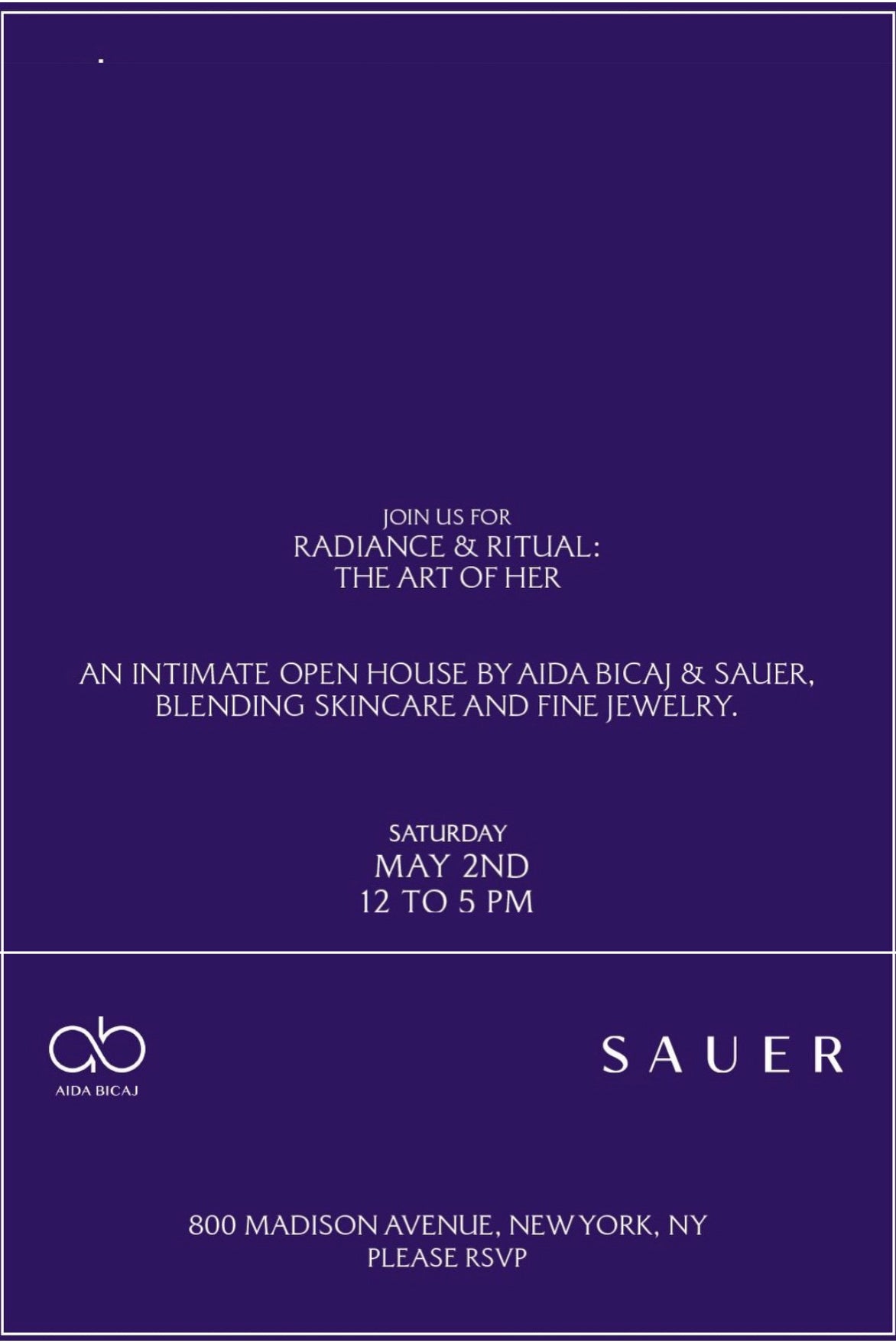 Join us for an intimate open house hosted by Aida Bicaj Skincare and Sauer Jewelry, bringing together skincare expertise and fine jewelry in a refined, come‑and‑go setting. This afternoon is designed for effortless discovery, personalization, and indulgence.